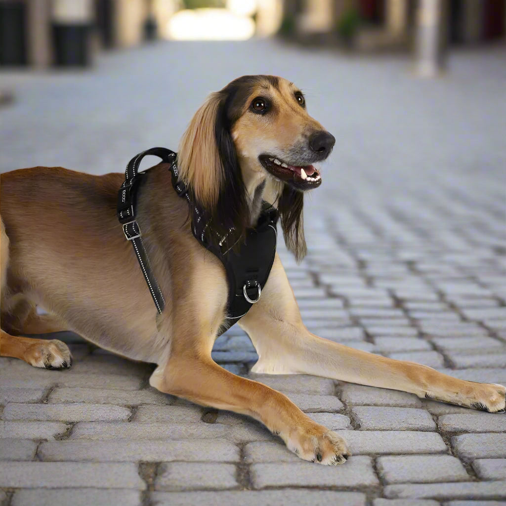 Designed for stronger dogs who need a tougher harness for more control or for dogs with a tendency to pull, these heavy-duty harnesses have 4 adjustment points. Use the front D-ring on the chest to attach your leash and control pulling or use the D-ring on the back for a regular dog walk and for dogs who don’t tend to pull. Made from heavy-duty reflective nylon for strength and visibility and padded with neoprene for extra comfort.