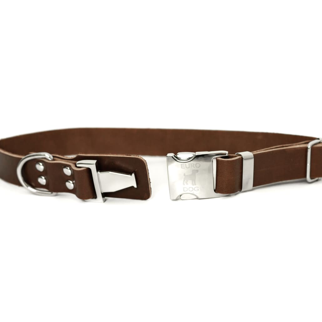 Modern Style Quick-Release Chocolate Leather Dog Collar