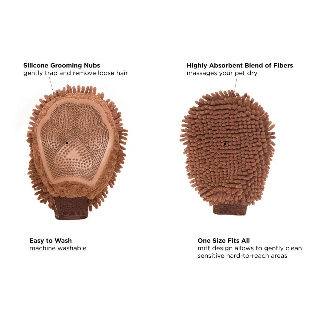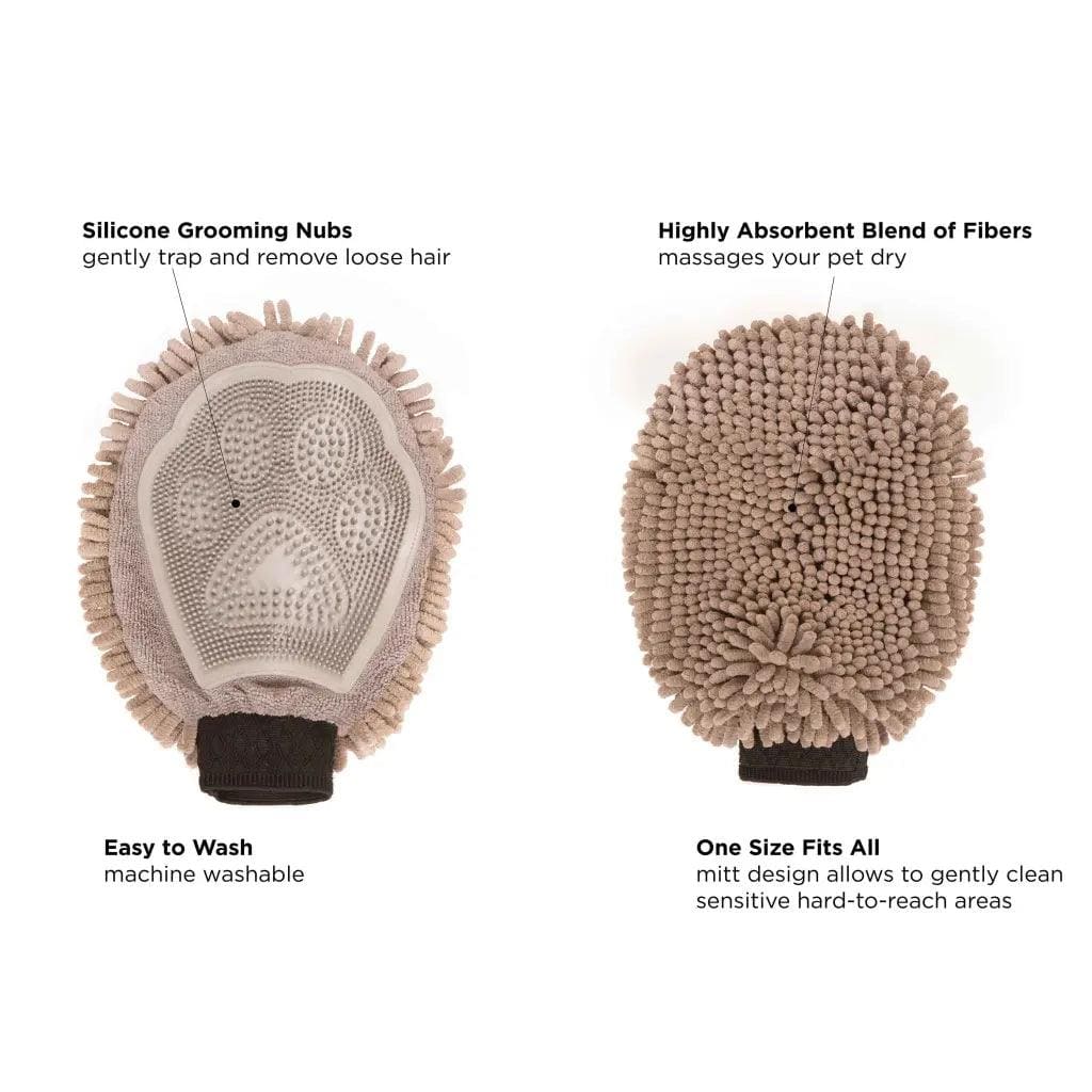 The Dirty Dog Shammy by Dog Gone Smart is great for the bath, beach, park, car, on walks, or just about anywhere you need to dry a wet dog! The Advanced Microfiber Technology traps water instantly! Millions of soft microfiber strands create an extra-large super-sponge. These shammies have a Grams Per Square Meter (GSM) absorption rate of 3000; this advanced wicking power absorption rate is considerably higher than any of the competition that have GSMs in 900 to 1500 range. The Dirty Dog Grooming Mitt is two tools in one! The soft and gentle rubber side excels at removing excess dog hair to keep your fur babies clean, happy and handsome. Quickly untangle fur on short or long hair dogs and easily get hard-to-reach places. For use just about anywhere and anytime! It’s more than just a bath towel – use them after a day at the beach, after the rain, or before a car ride. The Dirty Dog Shammy is just better than the competition!