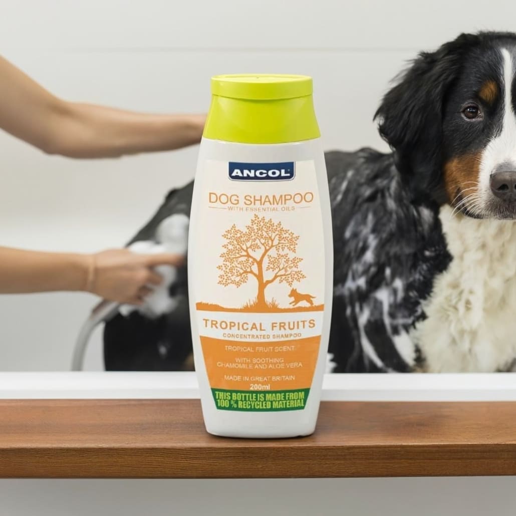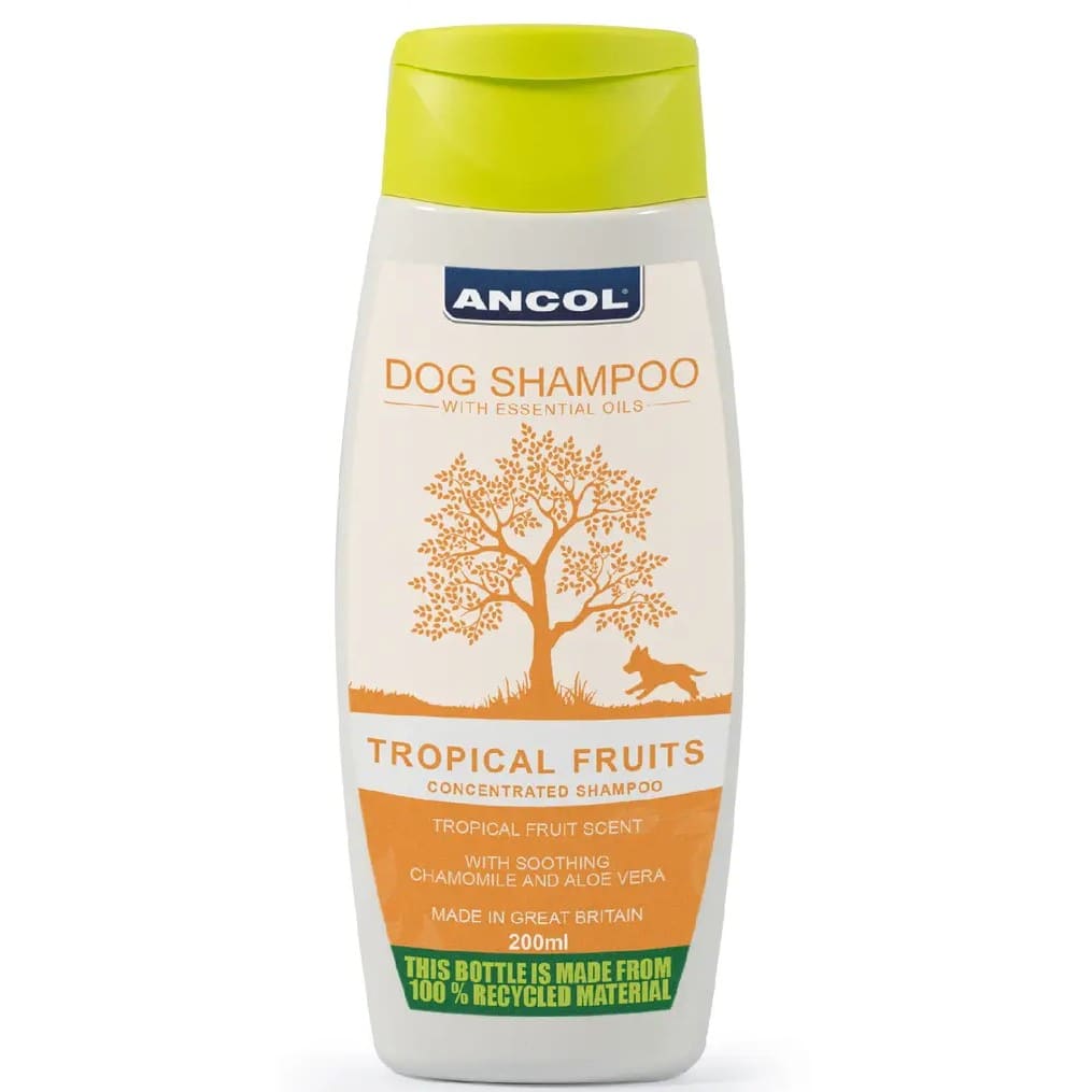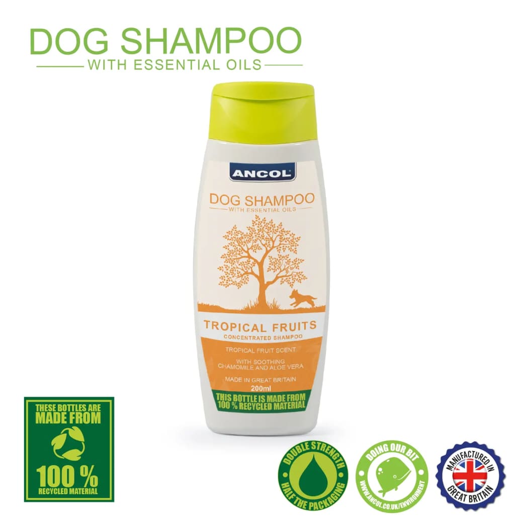 Experience the all-natural benefits of Ancol's VEGAN Tropical Fruit Dog Shampoo! Featuring a blend of tropical scents, Aloe Vera, and calming Chamomile, this gentle formula is perfect for both dogs and puppies. Harnessing the power of natural essential oils, this shampoo deeply cleanses while being kind to your furry friend's skin. With a concentrated 200 ml formula, each bottle provides up to 20 refreshing washes. Made with pride in the UK.