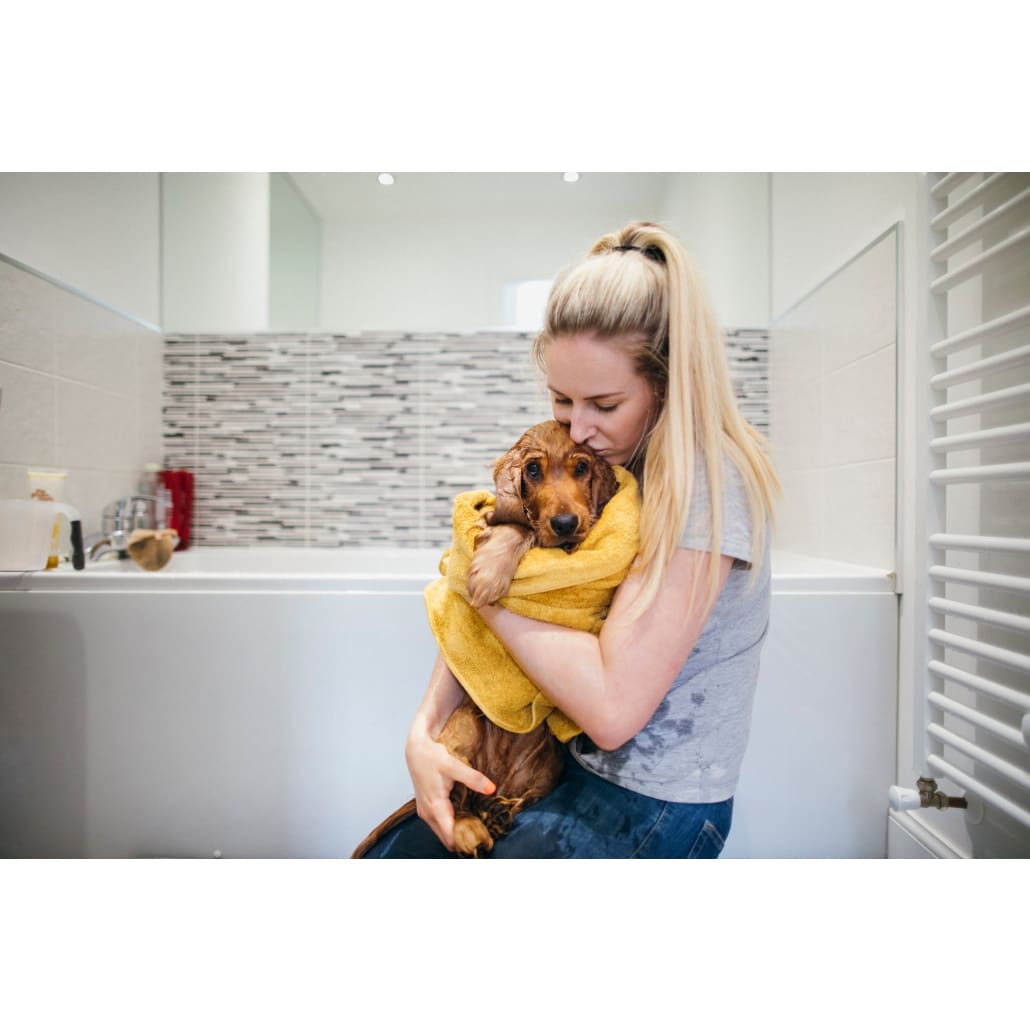 • Unlike chemical-laden dog shampoos, this shampoo is gentle enough to use on puppies and adult dogs alike.