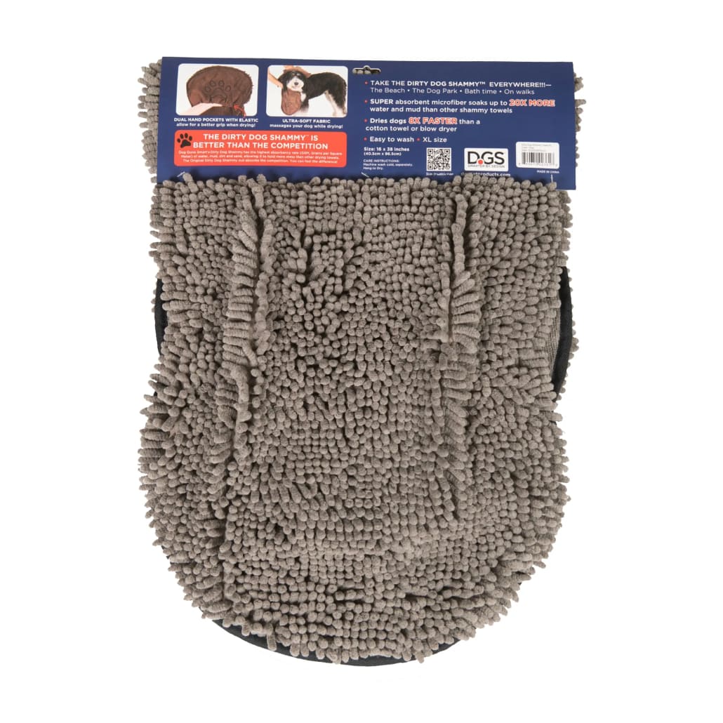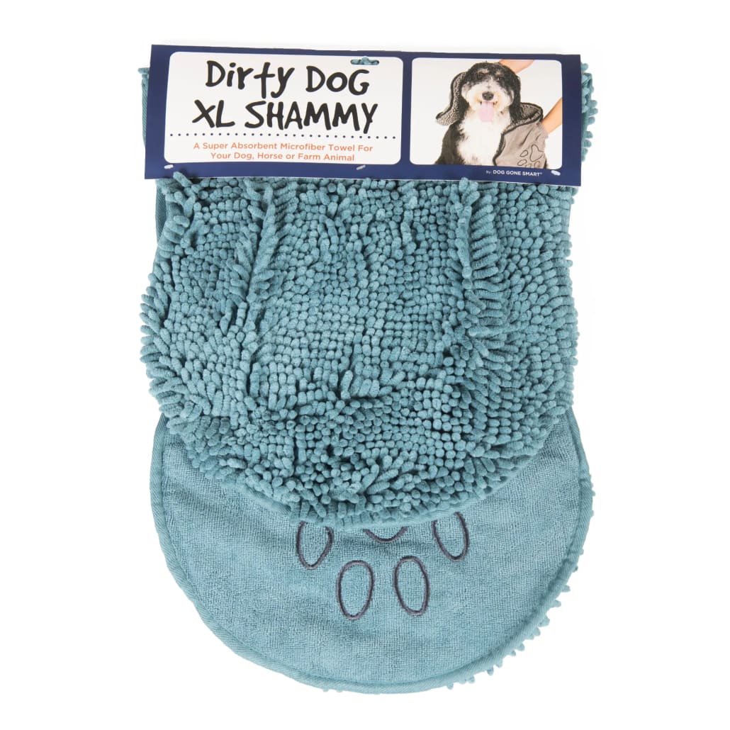 The Dirty Dog Shammy by Dog Gone Smart is great for the bath, beach, park, car, on walks, or just about anywhere you need to dry a wet dog! The Advanced Microfiber Technology traps water instantly! Millions of soft microfiber strands create an extra-large super-sponge. These shammies have a Grams Per Square Meter (GSM) absorption rate of 3000; this advanced wicking power absorption rate is considerably higher than any of the competition that have GSMs in 900 to 1500 range. For use just about anywhere and anytime! It's more than just a bath towel - use them after a day at the beach, after the rain, or before a car ride. The Dirty Dog Shammy is just better than the competition!