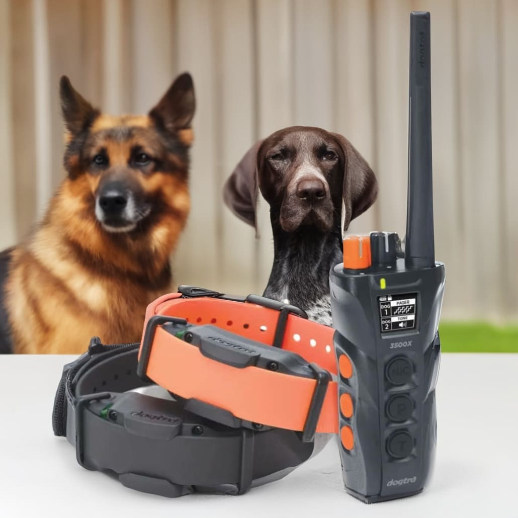 The Dogtra 3502X is designed for advanced handlers, packaged with a professional grade DUAL DIAL transmitter and IPX9K waterproof receiver. Geared towards professionals, the unique and essential features are intended to elevate your training regimen: 1.5-mile range*, Correction Level Lock, single-button Nick/Constant correction, HPP vibration, audible tone, 8-level Selector Dial, and expandable DUAL DIAL for independent 2-dog control. The DUAL DIAL transmitter comes with a dimmable OLED screen and two sets of the Selector Dial and buttons dedicated to each collar, which allows seamless and effective operation of the collars without switching levels back and forth. * The range may reduce depending on the surroundings.