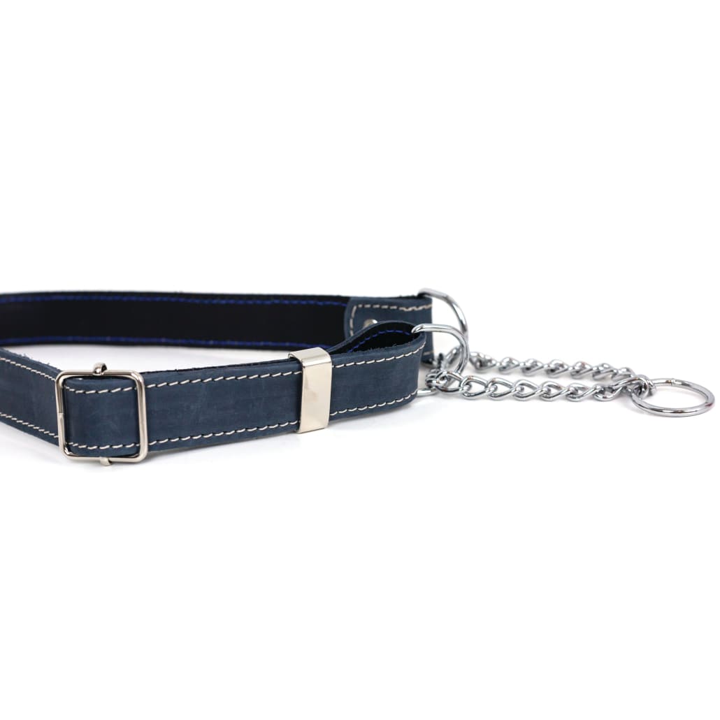 Inspired by centuries of European tradition, the Martingale Blue Jeans Leather Dog Collar blends timeless style with rugged strength. Crafted from premium full-grain American leather and accented with vibrant polyester stitching, this collar stands out while keeping your pup comfy. Featuring a sturdy European steel buckle and an extra leather tongue for added protection, it’s a perfect mix of old-world charm and modern durability—handmade in Colorado with love from both sides of the Atlantic.