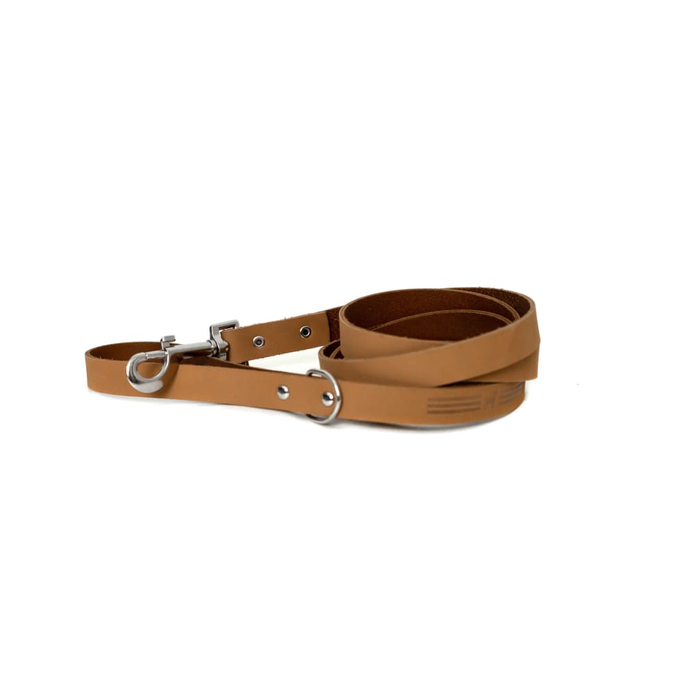This contemporary khaki leather leash combines elegance with practicality. Featuring an additional D-ring near the handle, it’s perfect for securing the leash or attaching a waste bag holder. Let your dog stand out and turn heads with this sophisticated Modern Style Euro Dog Lead.