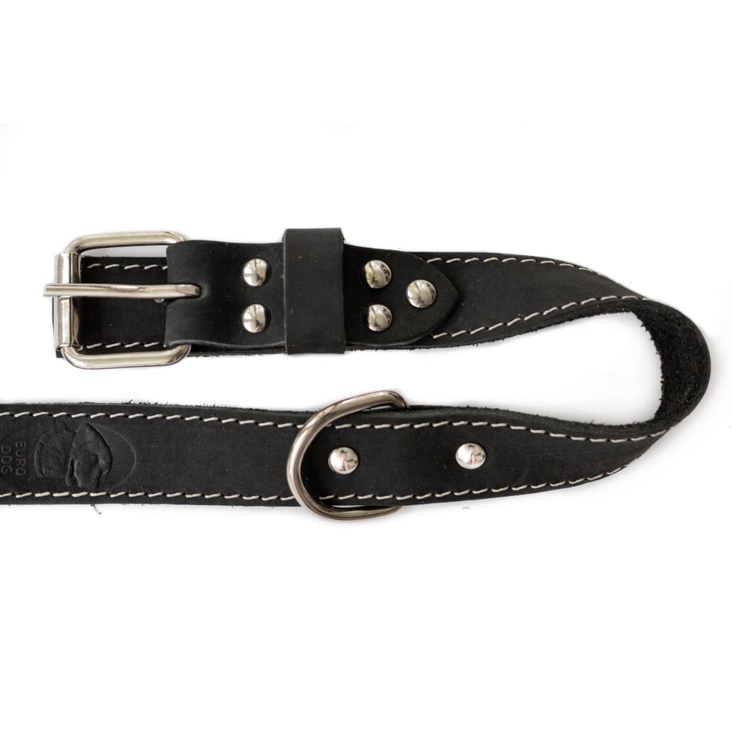 Rooted in centuries of European tradition, the Euro-Dog collar blends timeless style with rugged durability. Crafted from premium American leather and accented with sturdy European steel, this genuine leather collar features vibrant polyester stitching and an extra leather tongue to keep your pup comfy. The handy lead ring on the back makes clipping on a leash a breeze and doubles as a training aid. Born in Europe and made in Colorado, Euro-Dog collars bring the best of both worlds to your furry friend’s wardrobe.
